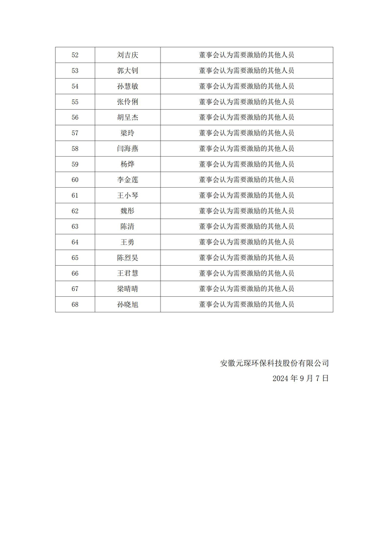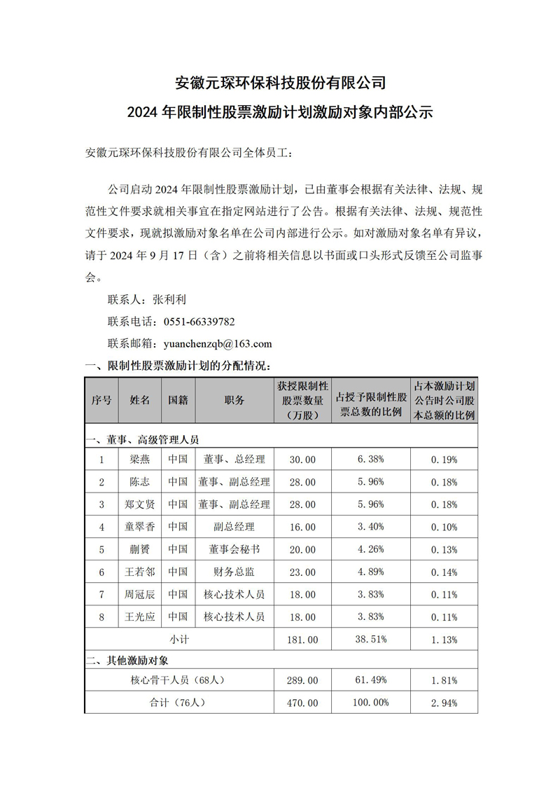 安徽意昂体育环保科技股份有限公司 2024年限制性股票激励计划激励对象内部公示