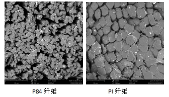(一)微观截面:P84纤维,最为人所知的就是它的三叶型截面,因此具有比较大的比表面积,过滤效果好。而PI纤维截面大多呈圆形。