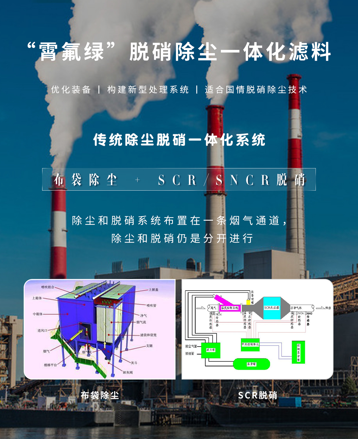 | 产品名称 | 除尘脱硝一体化单层滤料 | 除尘脱硝一体化双层滤料 | 除尘脱硝一体化覆膜滤料 | |